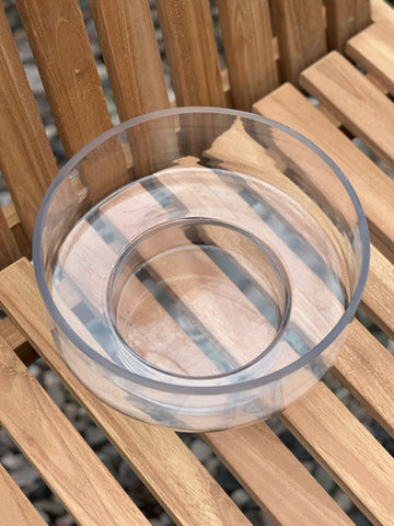 Este florero con base mide 25cm x 13cm altura.