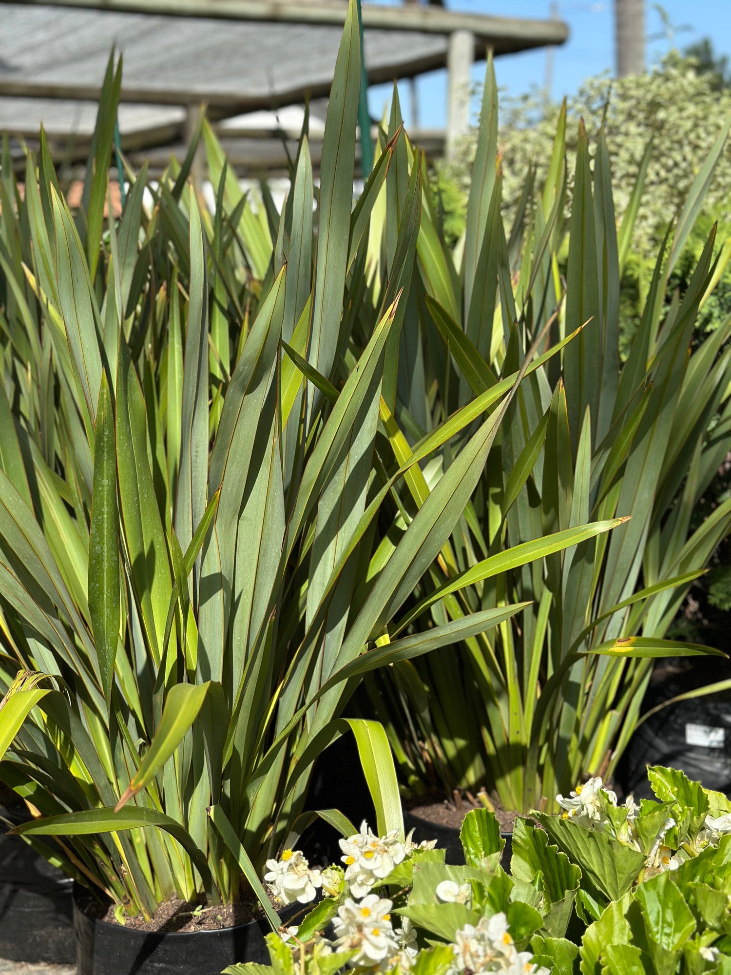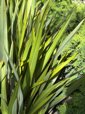 PHORMIUM TENAX (FORNIO VERDE) : Planta perenne, de porte erguido y follaje persistente. Tiene ramilletes de hojas ensiformes, rígidas y de color verde oscuro.